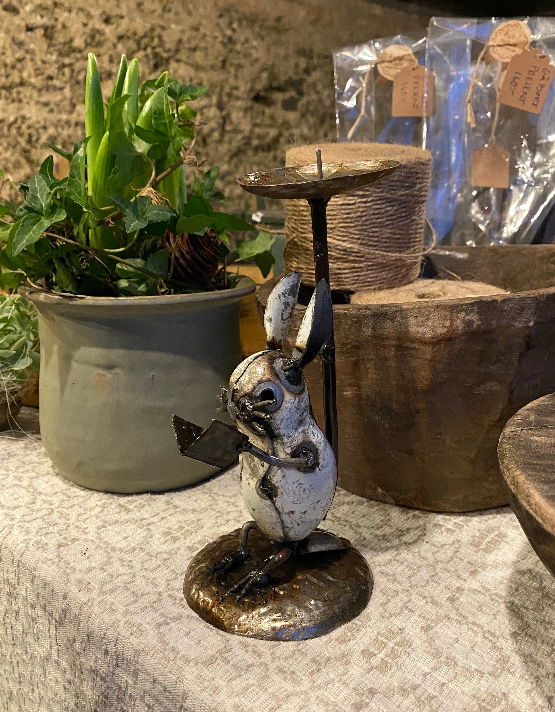 Möt vår charmiga ljushållare i form av en läsande hare – ett unikt konstverk som förenar funktionalitet med berättarglädje. Denna förtjusande hare sitter försjunken i sin bok, redo att sprida ett varmt sken i ditt hem.