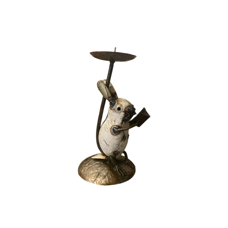 Ljushållare Hare Läser Bok - Återvunnen Metall från Zimbabwe