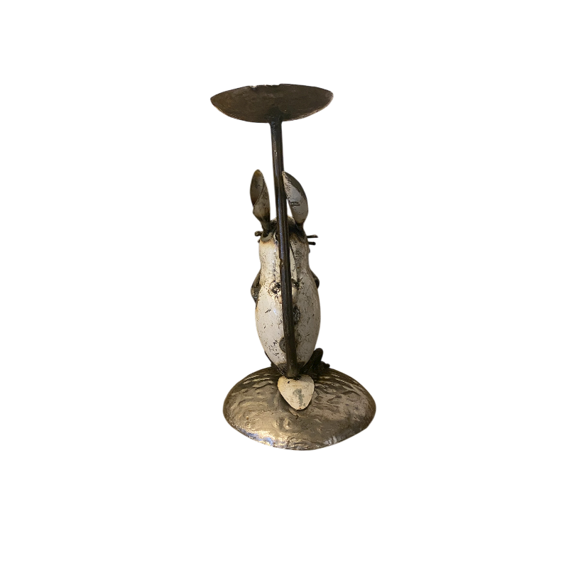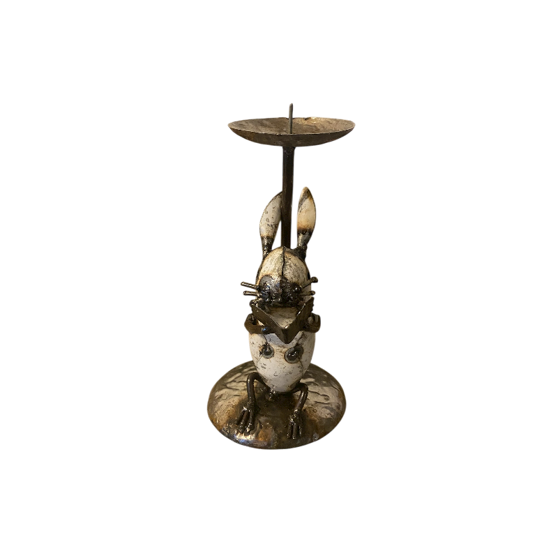Varje ljushållare är noggrant handgjord av skickliga hantverkare i Zimbabwe från återvunnen metall. Genom att välja denna produkt stödjer du både hållbart hantverk och lokala konstnärer.