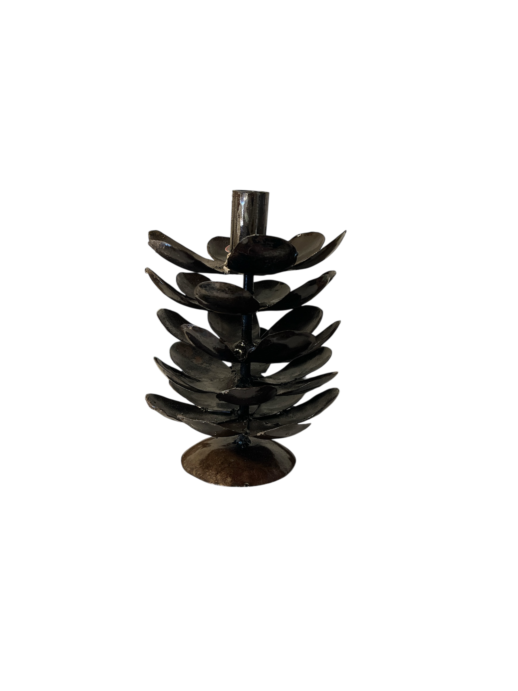 Denna handgjorda ljushållare är noggrant tillverkad av skickliga hantverkare i Zimbabwe från återvunnet metall. Varje kottfjäll representerar en berättelse om kreativitet, återvinning och kulturell stolthet.