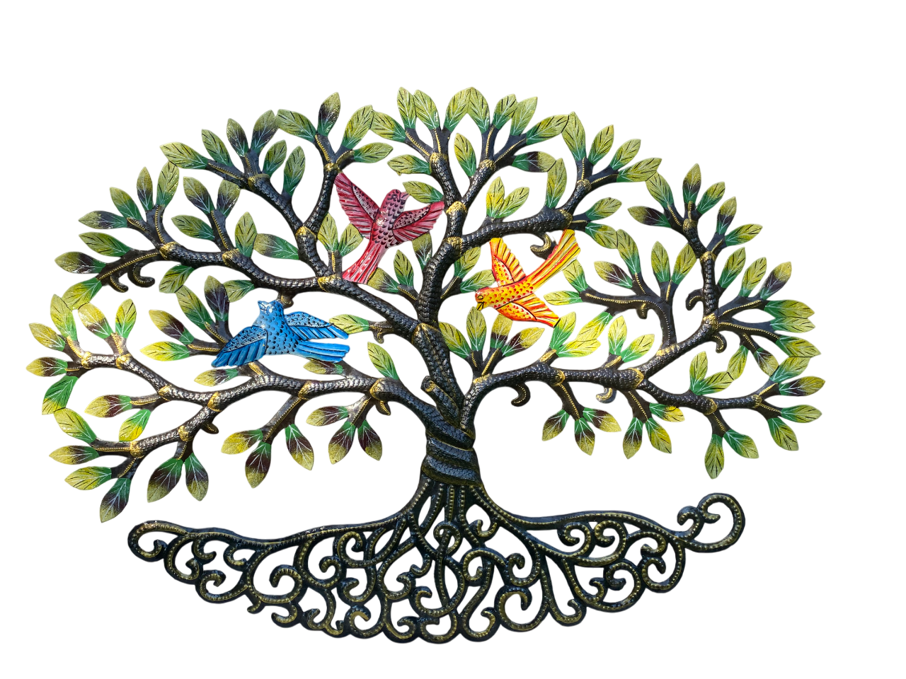 Väggdekoration oval 84 cm tre fåglar målad